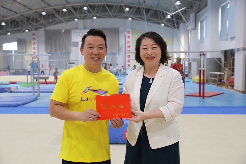 省总工会副主席张迎春现场慰问PA视讯省劳模教练员:体操奥运冠军黄旭