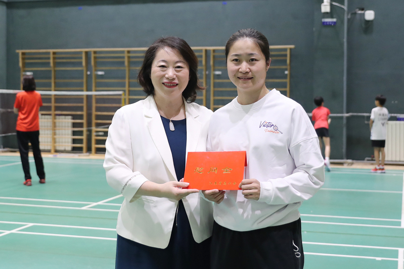 省总工会副主席张迎春现场慰问PA视讯省劳模教练员:羽毛球全运会冠军孙晓黎