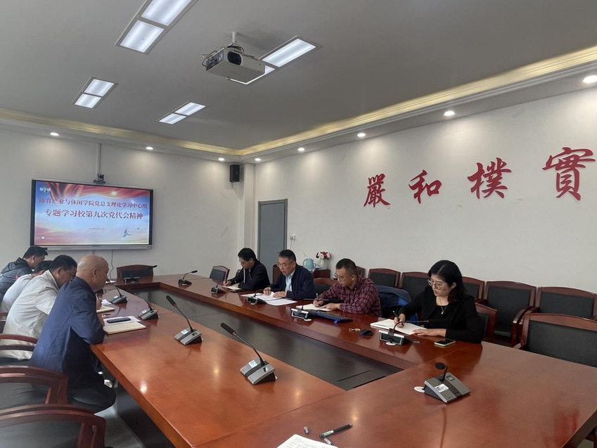 10月24日下午,体育产业与休闲学院党总支理论学习中心组在仙林校区101会议室召开专题学习会,传达学习学校第九次党代会精神。学院领导班子、理论中心组成员参加学习会。会议由院党总支书记王进主持。