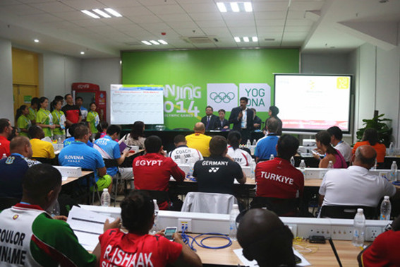 近日,各国参赛运动员已陆续前往我院进行训练,羽毛球项目也于15日上午在我院体育馆进行了分组抽签仪式。国际奥委会官方转播服务机构OBS、中央电视台等国内外媒体也陆续在我院展开转播调试工作。青奥赛时气氛渐渐浓郁。