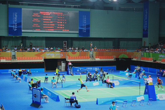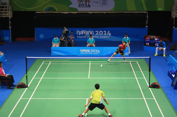 8月17日,南京青奥会第一个正式比赛日,羽毛球、网球竞赛项目的比赛如期在我院正式展开。羽毛球比赛自上午9点开始,赛制分为分组单循环赛和单淘汰赛,自四分之一决赛开始为单淘汰赛。网球比赛自下午3点开始,所有比赛均采用淘汰赛制。