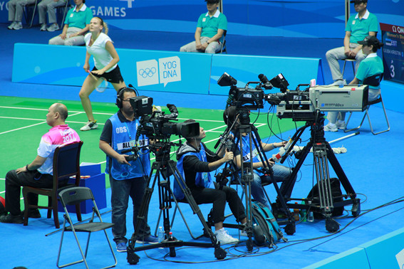 海外媒体记者拍摄羽毛球比赛