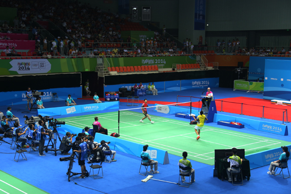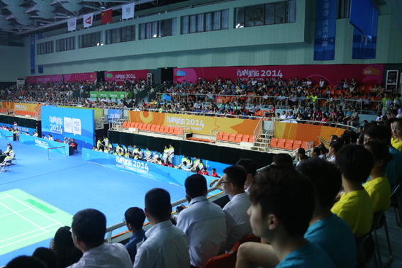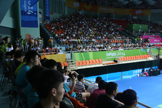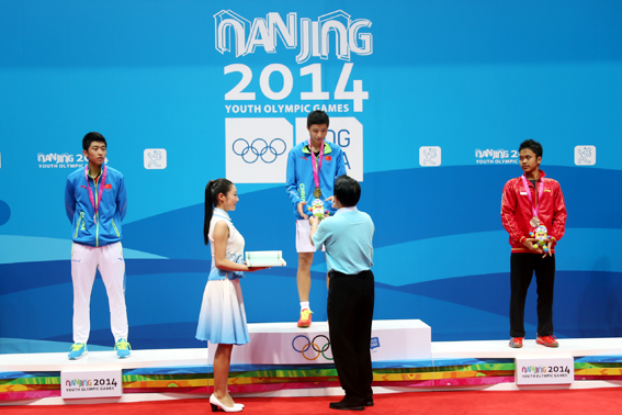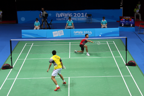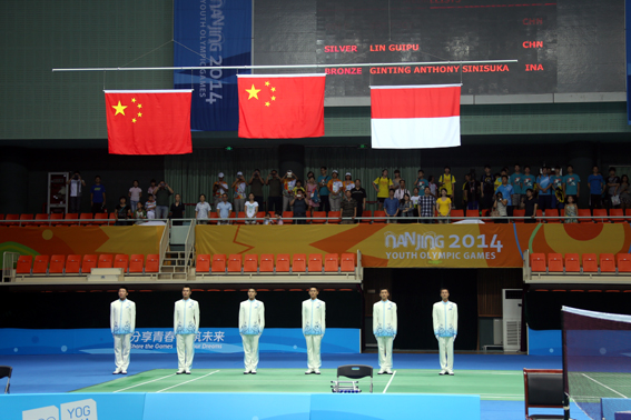 8月22日晚,本届青奥会羽毛球最后一场比赛即男单决赛在我院体育馆展开较量,由我院选手石宇奇对阵队友林贵埔。最终,石宇奇以21:15、21:19连下两局,夺得青奥会羽毛球男单金牌,林贵埔获得银牌。铜牌得主则是印度尼西亚选手安东尼·西尼苏卡·金廷。