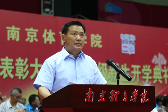 2014年9月27日上午,我院在青奥会羽毛球比赛场馆隆重举行院青奥工作总结表彰大会暨2014级新生开学典礼,全体院领导及院各单位、机关各部门负责人出席会议并在主席台就座,我院参加青奥工作的全体工作人员、志愿者、2014级新生以及运动队教练员、运动员、管理人员和教学单位的教师代表参加了会议。