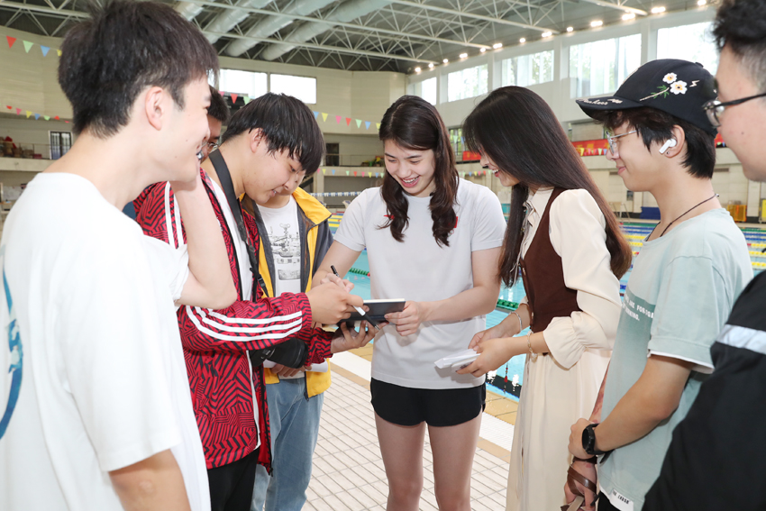 奥运冠军张雨霏在学校游泳馆与大学生互动交流