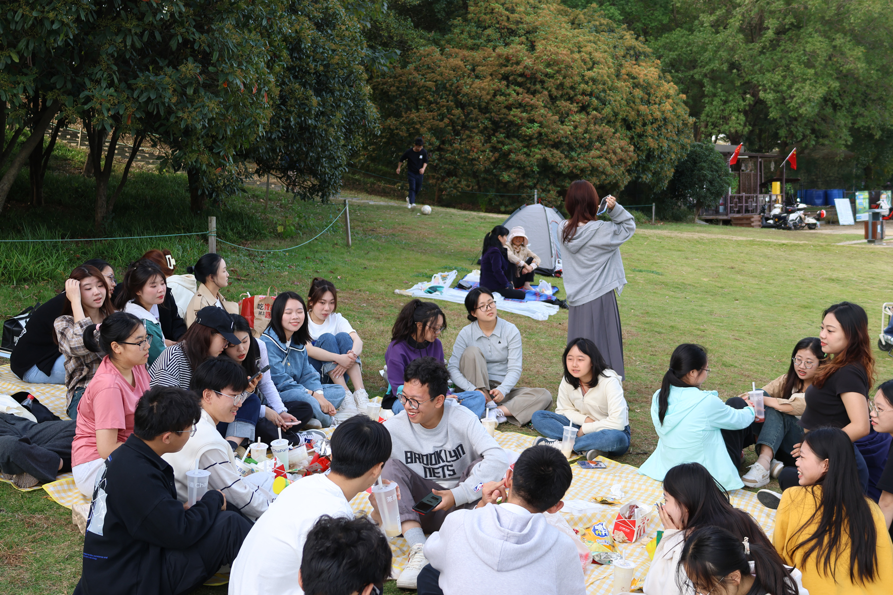 活动开始,主席团成员及副部长们先是给大家分发了零食和奶茶,秋风轻抚,水波荡漾,大家被食物的香气包裹,欢声笑语装点静谧之秋。