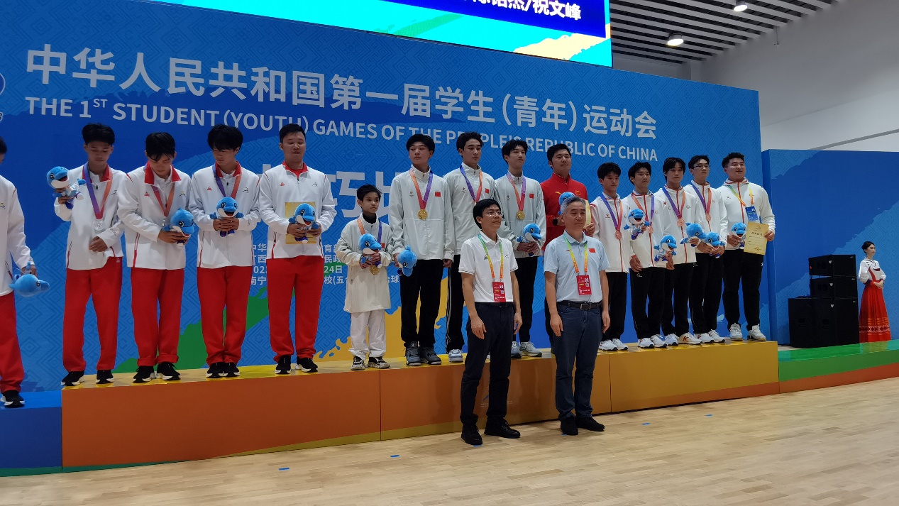10月24日下午,第一届全国学生(青年)运动会(公开组)技巧项目比赛在广西南宁市体校五合校区体育综合训练馆落下帷幕。体操学院技巧队运动员发扬了敢打敢拼的顽强作风,女子双人甲组杨馥地、姚陈雨飞为学校夺得首枚学青会金牌。在随后举行的男子四人甲组比赛中,华宏图、康国强、褚中原、杨鑫为学校夺得了第二枚金牌