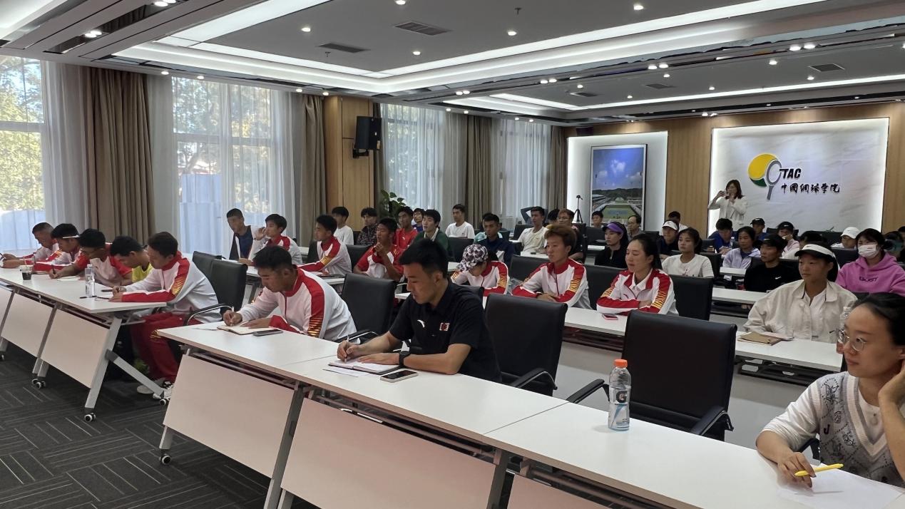 网球学院副院长姜惟针对队伍出征、训练安排、住宿安排、参赛流程进行了详细部署。要求队员统一行动、统一用餐,严格遵守运动员村与赛场的各项规定,做好个人健康防护,确保没有非战斗性减员,在赛场上做到自信、自律;要求教练团队身体力行,做到正确引导与监管,细化备战方案,完善备战各项工作。