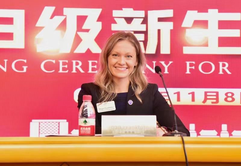 罗克福德大学招生管理副校长梅根·弗兰克富泽讲话
