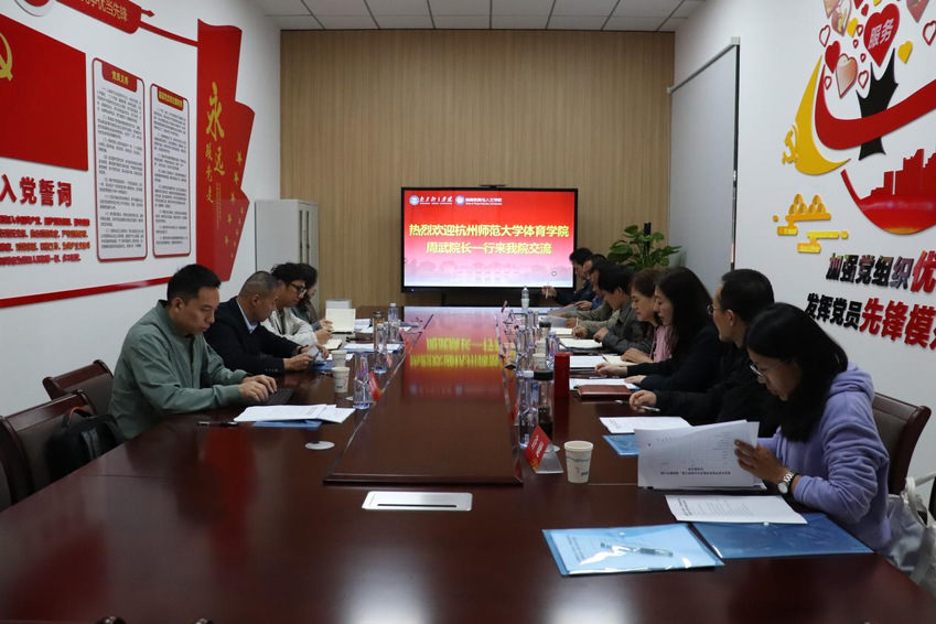 会议伊始,沈鹤军对杭州师范大学体育学院一行表示欢迎,并介绍了体育教育与人文学院的办学历史、组织架构和学科特色,特别是在体教融合方面取得的一些成果。赵琦介绍了运动训练学院的办学历史、教学情况和各专业发展情况。