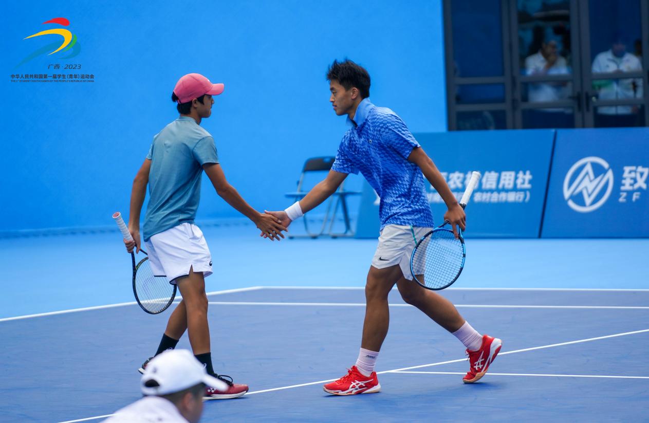 第一盘中,梁亮、胡佳敢打敢拼,以7:5的比分惊险拿下首盘;随后,对手以6:3拿下第二盘,把比分扳平。在第三盘抢十中,梁亮、胡佳顶住压力,始终保持比分领先优势,最终以10:8获胜。男双比赛中,梁亮、胡佳的晋级之路非常艰难,先后击败了香港队、天津队,最终问鼎八桂大地。