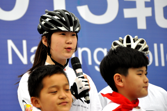 李丽莎代表轮滑选手宣读倡议书