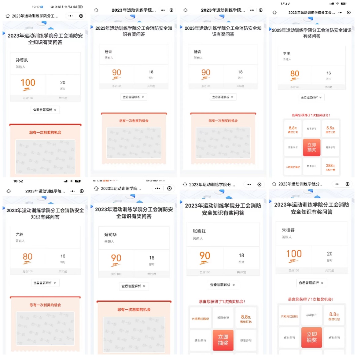 活动以线上答题的形式开展,问题涉及日常消防安全知识、逃生自救、预防火灾、扑救初期火灾等方面,教师们积极参与,据统计,运动训练学院教师全员参与此次活动。