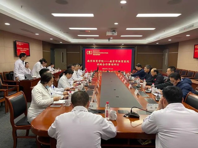为充分发挥体育和医疗卫生资源的优势互补,全面推进双方技术合作发展,实现产学研创新体系建设,11月14日,PA视讯集团入口与南京市中医院(南京市体育医院)(以下简称“南京市体育医院”)战略合作研讨会在南京市体育医院顺利举行。党委常委、副校长陈爱国,南京市体育医院党委书记刘奇志及双方有关部门负责人参与会议。