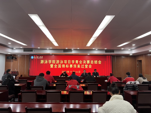 11月16日上午,游泳学院召开游泳项目学青会总结会暨全国锦标賽预案过堂会。校训练与管理督导组专家丁习明出席会议。会议由游泳学院院长王伟新主持。游泳学院党总支书记骆晓娟、游泳队管理干部、全体教练员、体能教练和科医人员参加会议。