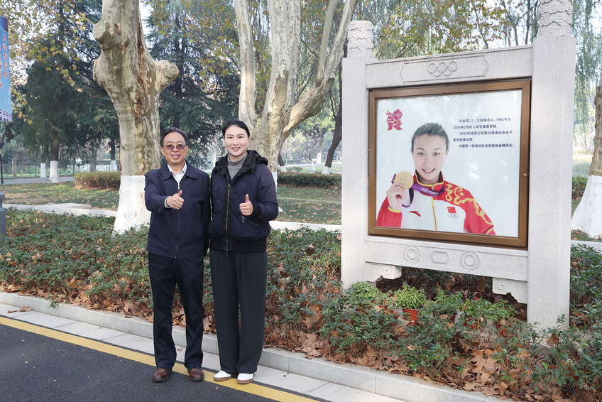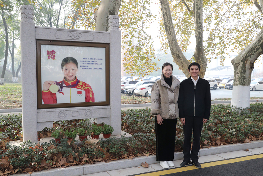 葛道凯与许安琪在奥运冠军大道合影留念