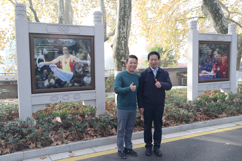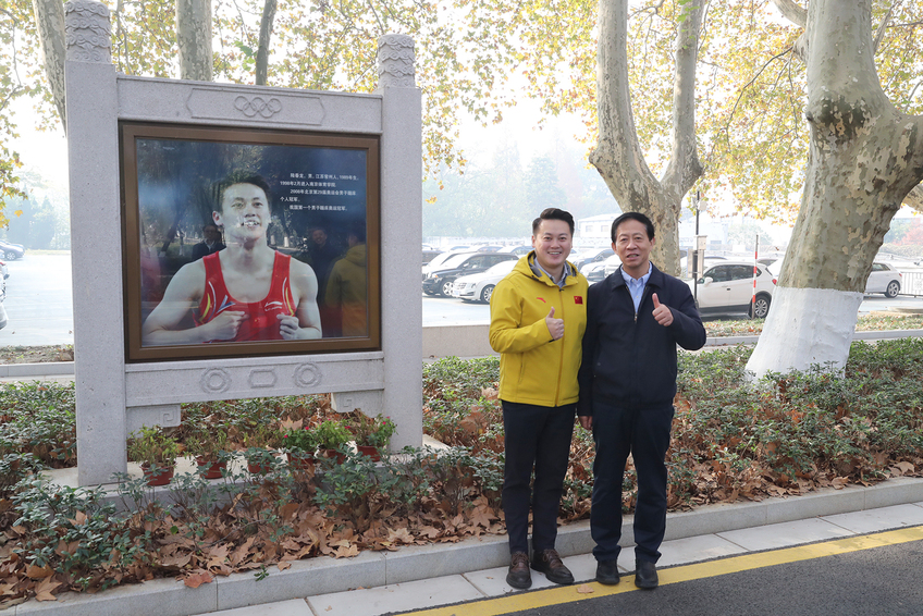胡刚与陆春龙在奥运冠军大道合影留念