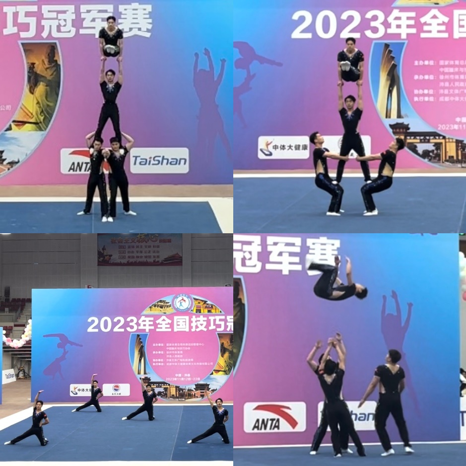 2023年全国技巧冠军赛于11月12-22日在江苏省徐州市举行。全国技巧冠军赛由国家体育总局体操运动管理中心、中国蹦床与技巧协会主办,是国内技巧项目的重要赛事。此次比赛共吸引了来自江苏、浙江、广东、广西等15个省市、116支代表队共计1303名选手参赛。武术与艺术学院表演系主任吴平平与技巧啦啦队教练赵杰两位教师带领PA视讯技巧啦啦操队学生参加青年组男子四人一级比赛,并取得青年组男子四人一级全能决赛第四名,获得国家“一级运动员”称号的申请资格。