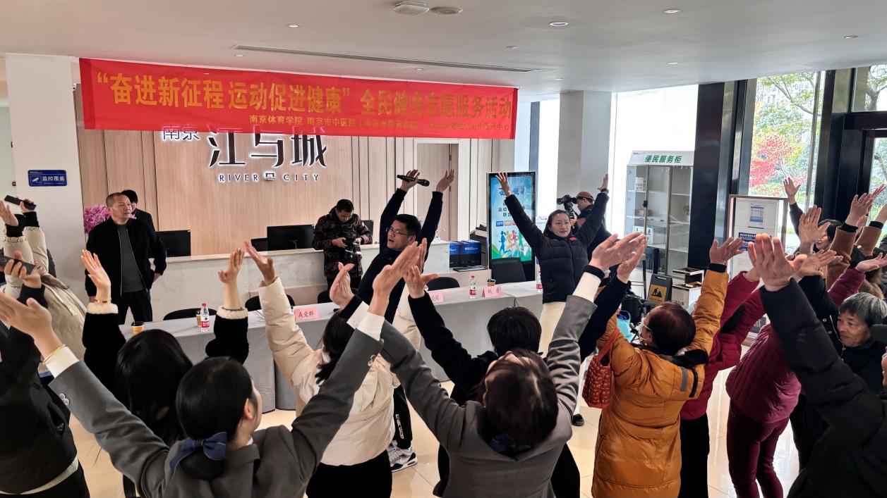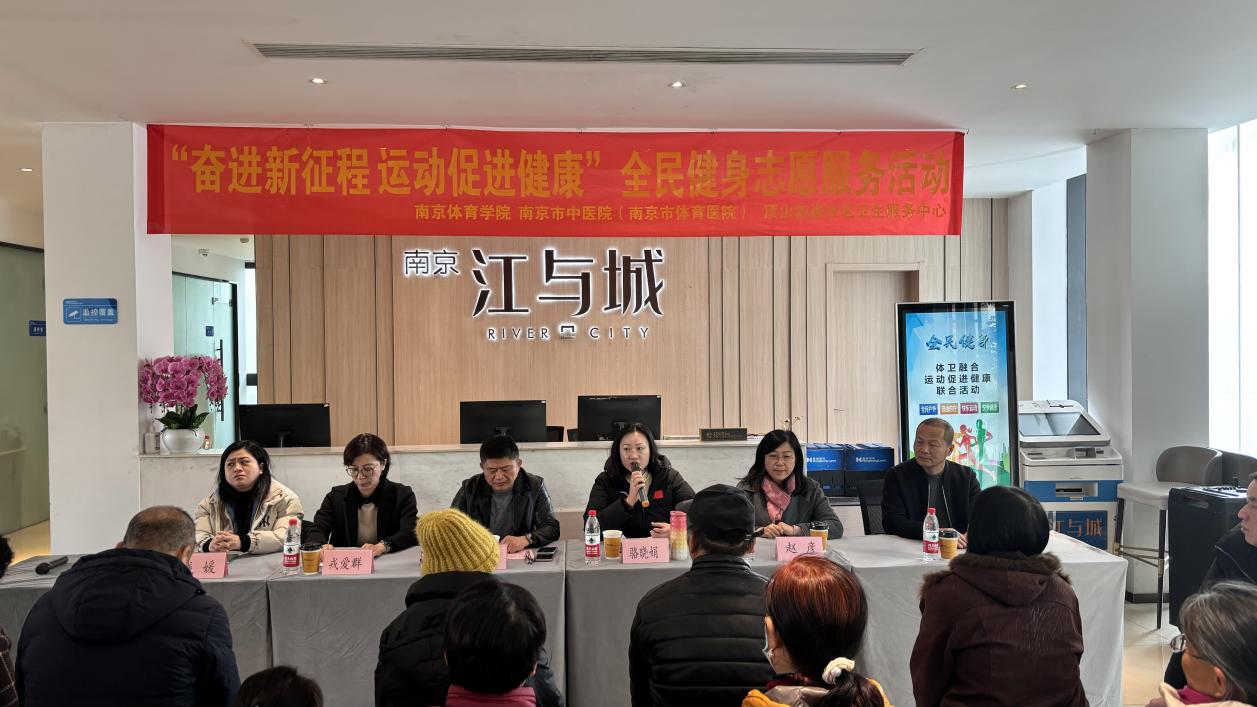 为促进中老年人和慢性病患者等重点人群的健康,11月30日上午PA视讯与南京市中医院(南京市体育医院)、顶山街道社区卫生服务中心在南京江北江与城小区联合举办了“体卫融合、运动促进健康”全民健身志愿服务活动。PA视讯集团入口游泳学院党总支书记骆晓娟、南京江北新区卫生健康和民政局副局长葛飞翔、PA视讯集团入口运动健康学院副院长赵彦、南京市体育科学研究所所长戎爱群、南京市中医院(南京市体育医院)门诊部主任钱媛以及江与城社区的近50位居民参与了本次活动。