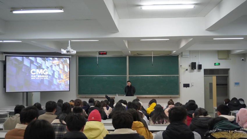 讲座上,黄鹤飞首先向同学们分享了自己在南体求学时的学习心得和初到央视后的工作经历,让同学们对职场生活有了初步认识。他向同学们介绍了中央广播电视总台的最新情况,着重讲解了中央广播电视总台如何从“政治站位、文化导向、市场价值”三个中心出发,讲好中国故事,展现了中央广播电视总台作为国内一流媒体的担当与作为。黄鹤飞对央视在体育传播方面进行的前瞻性探索做了详细介绍,增加了学生对体育新闻行业的信心和期待。