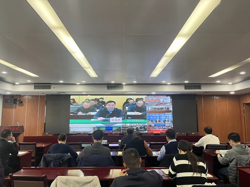PA视讯分会场设在行政楼201会议室,党委书记刘红明,党委常委、副校长肖爱华出席会议。学工处、研究生部、高等教育各二级学院主要负责人,2024届毕业生全体辅导员及学工处大学生就业指导中心相关工作人员参加了此次会议。