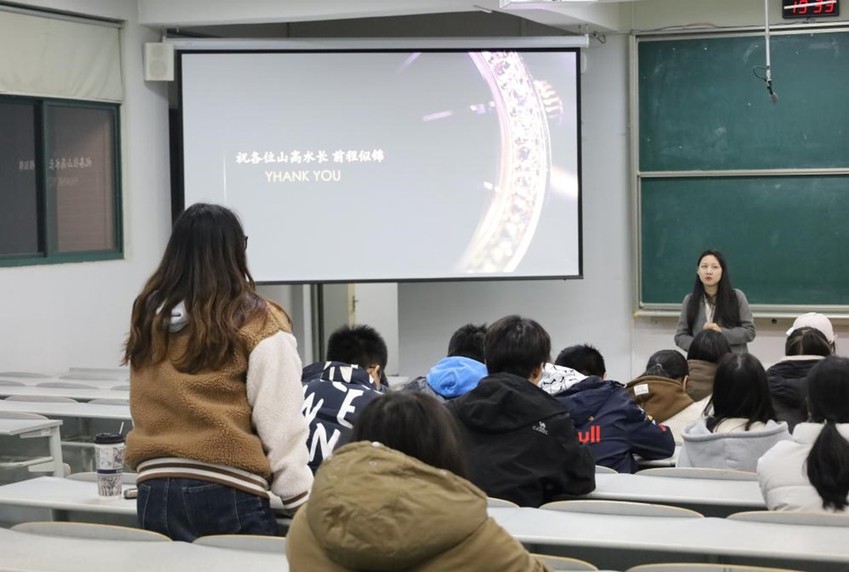 掌声响彻教室,讲座进入了尾声。葛蔚蔚干获满满的分享让同学们对电视媒体行业有了更深入的了解,为同学们打开了一扇通向未来选择的窗。