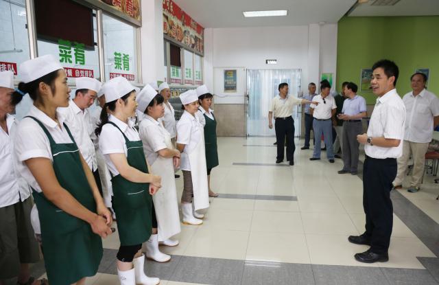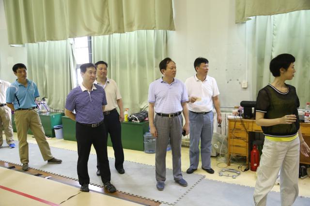 2015年8月5日上午,院领导陈国祥、汤岩、王正伦、史国生、李江、蒋宏伟、金松、肖爱华兵分两路,分赴我院各运动队、食堂、康复医院、保卫处、锅炉房等地,慰问正在冒着酷暑训练的教练员、运动员、管理人员以及为训练工作做好后勤服务和医疗保障、安全护卫工作的工作人员,并为他们送去了慰问品。