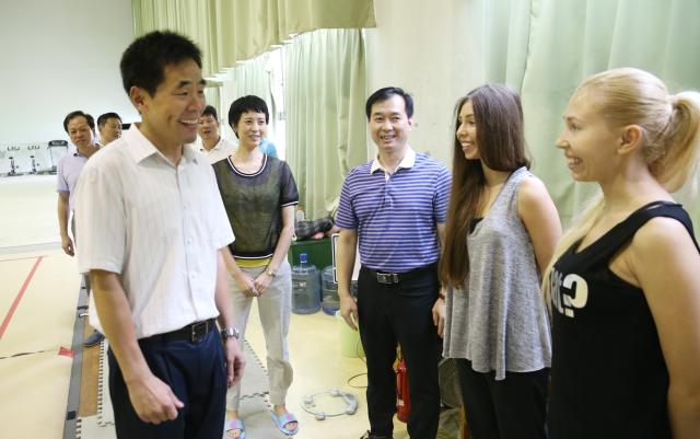 院党委书记、院长陈国祥与史国生、蒋宏伟、金松等领导在运动队慰问