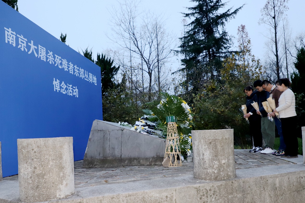 下午,后勤党总支部第一党支部在南京大屠杀遇难同胞东郊丛葬地举行悼念活动,深切缅怀南京大屠杀死难同胞,缅怀为抗战胜利献出宝贵生命的革命先烈和民族英雄。在南京大屠杀遇难同胞东郊丛葬地前,全体党员手拿白菊、默哀结束后,大家依次向遇难同胞敬献白菊,表达哀思,祈愿和平。