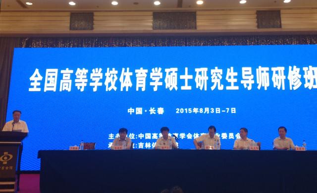 由中国高等教育学会体育专业委员会主办,吉林体育学院承办的全国高等学校体育学硕士研究生导师研修班于8月3日-7日在吉林长春举行。全国64所高校近200名体育学硕士研究生导师参加了此次研修班学习。我院唐永干、杨晖、王进、支川、唐芒果、周晓军和孙国友参加了学习班的学习。