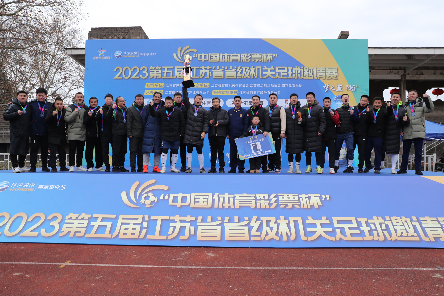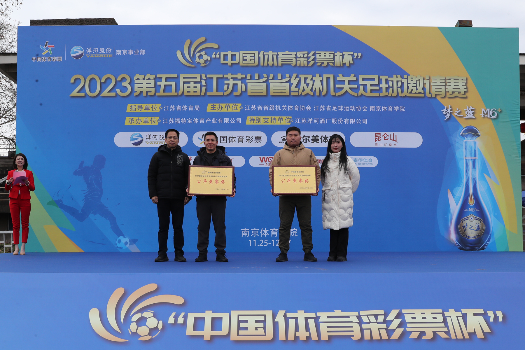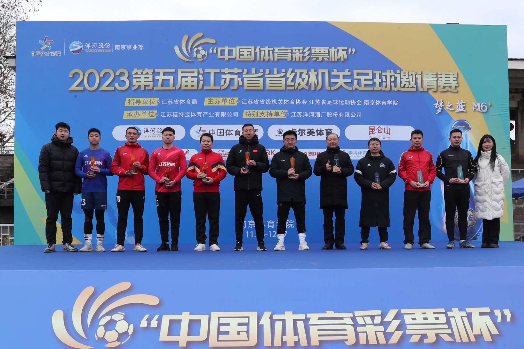 12月17日下午,“中国体育彩票杯”2023 第五届江苏省省级机关足球邀请赛颁奖仪式在PA视讯集团入口中央体育场田径场举行。
