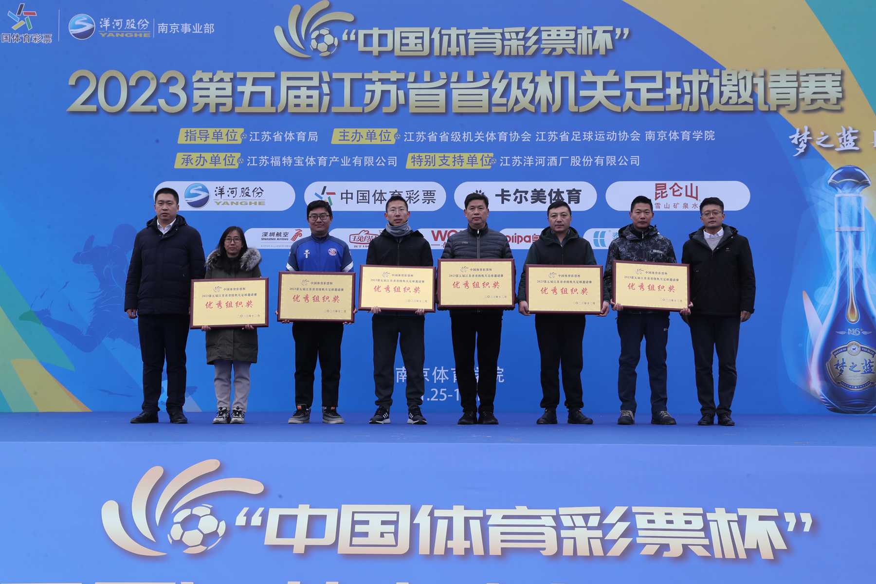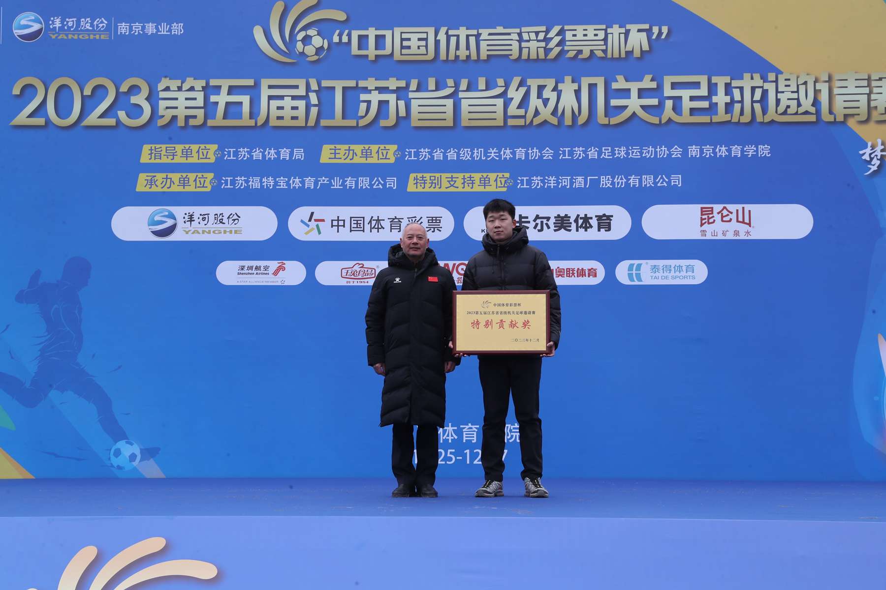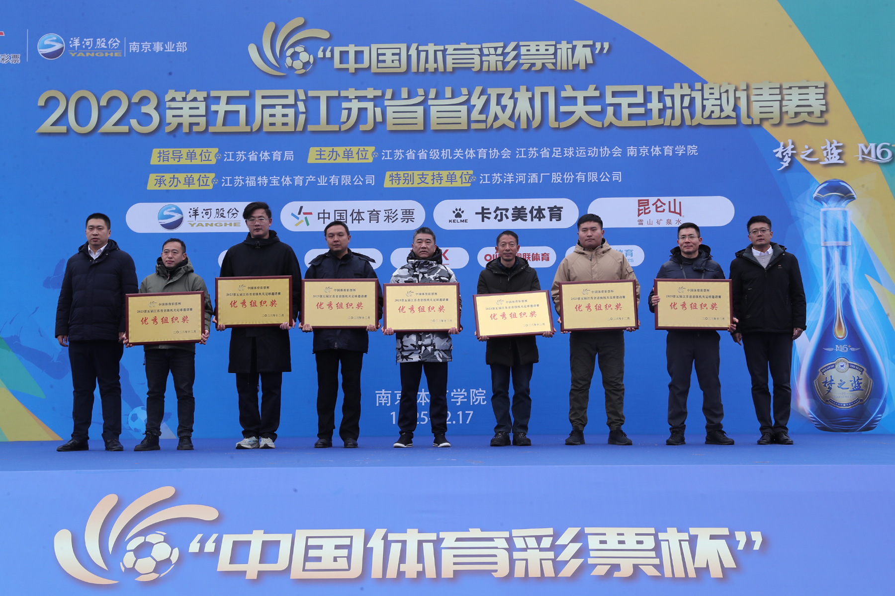 12月17日下午,“中国体育彩票杯”2023 第五届江苏省省级机关足球邀请赛颁奖仪式在PA视讯集团入口中央体育场田径场举行。