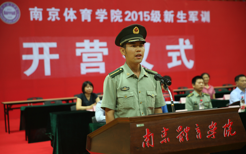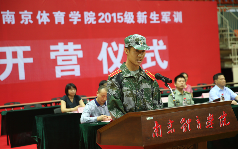 在开营仪式上,施训教官代表杨喆和学生代表民族体育与表演系新生邢天浩也分别发言。