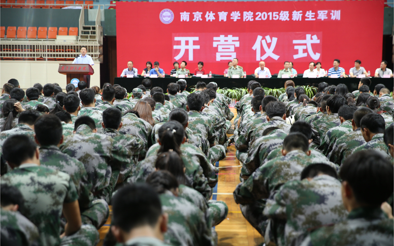 9月16日上午,院2015级新生军训开营仪式在体育馆举行。院党委副书记、副院长汤岩,副院长史国生出席开营仪式;副院长、军训工作领导小组组长金松,解放军理工大学野战工程学院学员大队政委许晓钟出席开营仪式并讲话。院学工处副处长陶利主持开营仪式。军训大队相关领导、施训教官、院机关代表、教学单位相关负责人、院军训办公室工作人员和各高教单位学生辅导员、班主任出席开营仪式。