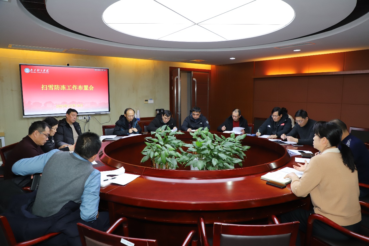 鲍勤强调,一是思想高度重视,切实做好扫雪防冻工作,维护广大师生员工安全,确保学校保持正常的学习、训练、工作和生活秩序;二是各部门积极配合,领导干部带头,提前到岗到位做好扫雪防冻工作;三是提醒教职员工做好个人防护工作,注意出行安全;四是对校园重点部位做好防护措施,确保校园安全稳定。