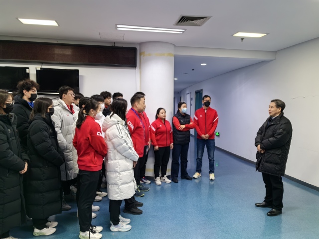 刘红明一行来到赛区休息区,详细询问了比赛赛程安排,听取了游泳队备赛情况和比赛成绩的汇报,并专程到国家队休息区看望慰问PA视讯国家队参赛人员,与PA视讯游泳运动员张雨霏、董志豪、杨雯文和教练员季志祥、黄光裕等以及科医保障人员进行了亲切交谈,详细询问了他们的备战参赛情况、身体状况、医疗保障、困难和需求等,代表学校表达了对大家的亲切关怀。刘红明鼓励全体参赛人员在后续比赛中以最佳竞技状态赛出成绩、赛出水平、赛出风格,并叮嘱大家在后续冬训中要注意防伤防病,严格做好反兴奋剂工作。