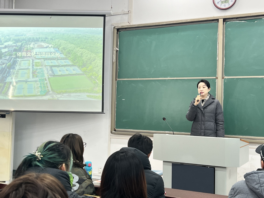 鲍勤首先介绍了习近平文化思想,强调了学习习近平文化思想的重要意义,分析了习近平总书记关于文化工作的系列重要讲话精神,阐释了“文化是一个国家、一个民族的灵魂。文化兴国运兴,文化强民族强,没有高度的文化自信,没有文化的繁荣兴盛,就没有中华民族伟大复兴”的论断,并提出了发展体育文化的重要命题。在此基础上,她重点围绕网球项目和网球文化,从网球项目的起源和发展、网球四大满贯公开赛、网球礼仪、中国网球学院发展状况等方面,进行了深入系统的讲授。同时,她结合自己的国外留学经历,向大学生分享了国外的体育文化理念、体育课程内容、体育教练类型以及教学科研特征。在提问环节中,鲍勤回答了大学生关于网球运动、专业发展、职业生涯规划以及学习生活方面的问题,耐心细致地解答了大学生的各种疑问。