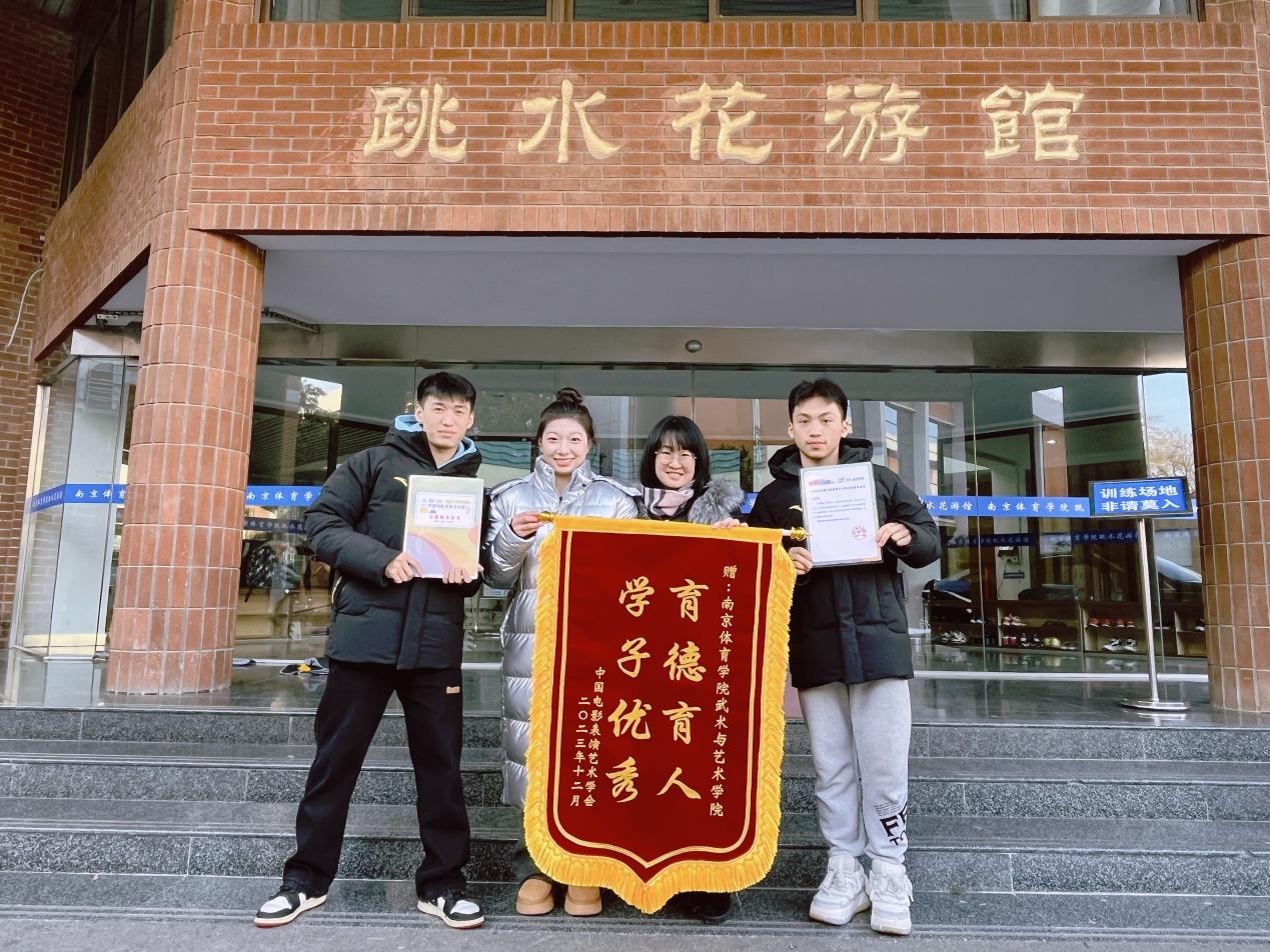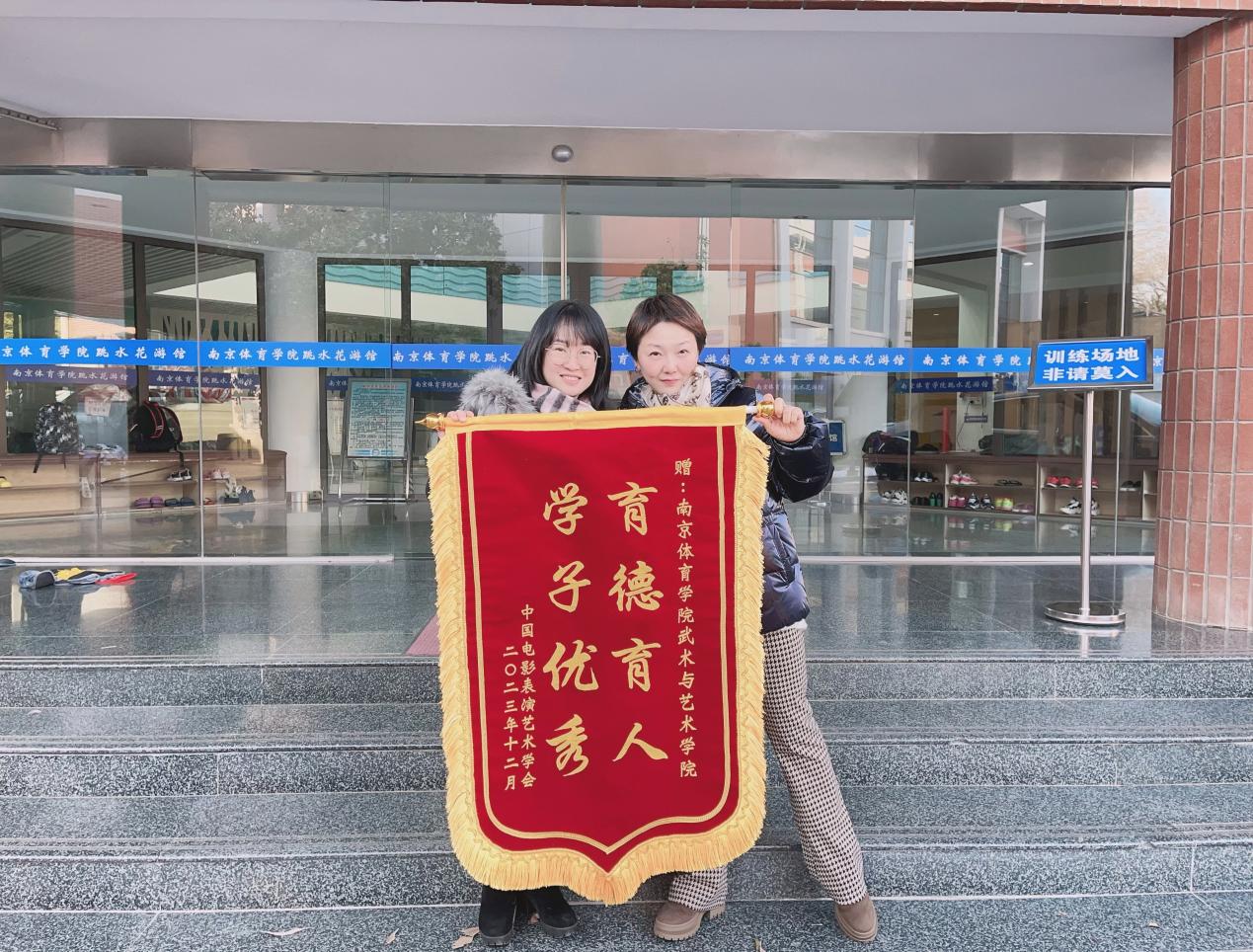 12月21日下午,南京广播电视集团主持人王蕾代表中国电影表演艺术学会为PA视讯武术与艺术学院送来锦旗,为表演专业学生参与中国电影表演艺术周实践活动表示致谢。表演系主任吴平平与学生们作为代表接受了锦旗与证书。