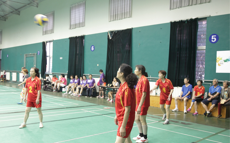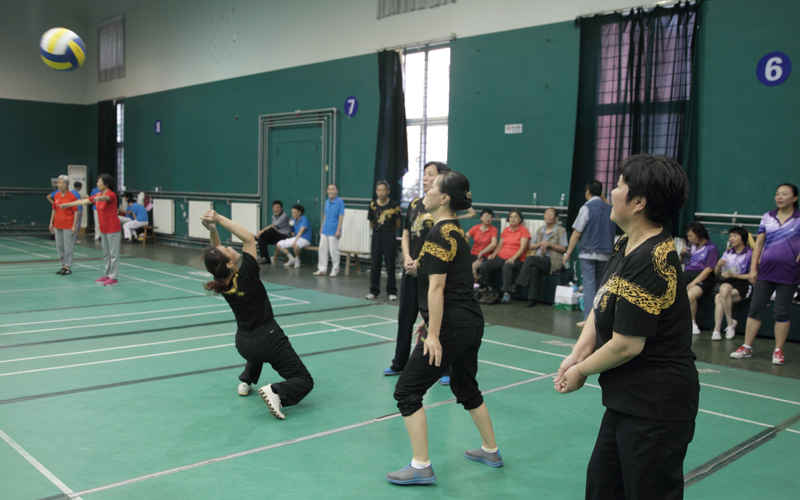 当天上午9点,比赛正式开始。参赛的老同志们全神贯注地投入比赛,发球、垫球、扣球、拦网……精彩的动作吸引了观众的目光和相机。裁判员和会务组成员现场进行着紧张的计分。比赛采用三局两胜制的规则。经过上下午两轮比赛,下午3点比赛顺利结束。