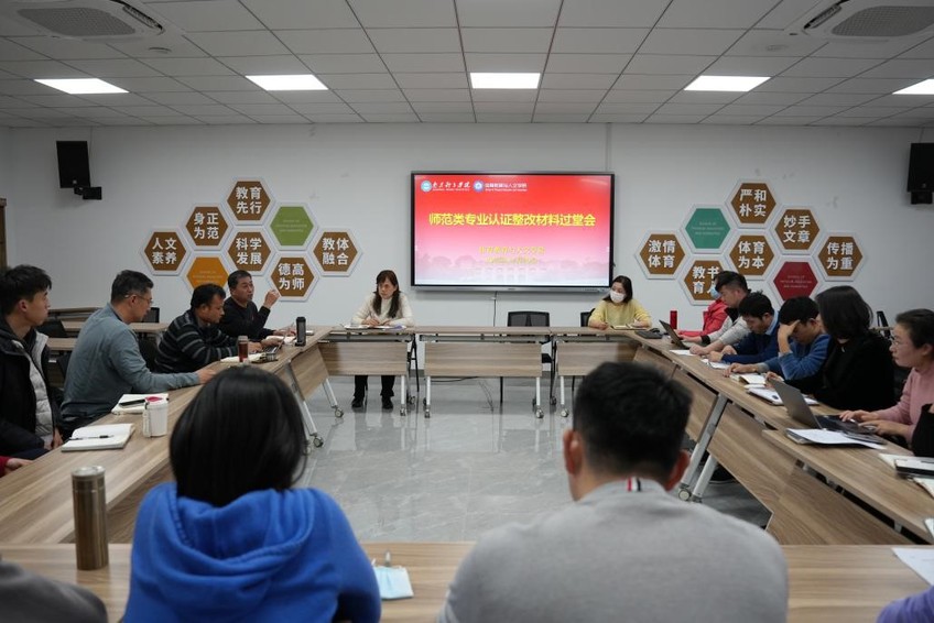 为了持续推进师范类专业认证整改材料的工作进度,12月26日下午,体育教育与人文学院开展师范类专业认证整改材料过堂会。体育教育与人文学院院长沈鹤军、副院长康晓磊、体育教育系主任霍军及体育教育系全体教师出席本次会议。会议由霍军主任主持。