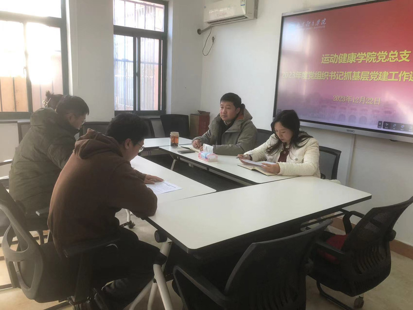 12月22日,运动健康学院党总支召开2023年度党支部书记抓基层党建工作述职评议大会。会议由运动健康学院党总支副书记阚妮妮主持。学院党总支书记丁永亮出席会议并作点评讲话。