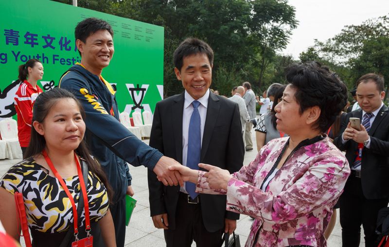 由联合国教科文组织、中华全国青年联合会、中国慈善联合会、南京市人民政府共同举办的“青年文化周”26日在南京开幕,省委常委、市委书记黄莉新致欢迎辞,市长缪瑞林主持开幕式。我院党委书记、院长陈国祥和我院奥运冠军陆春龙、仲满、骆晓娟、青奥会六枚金牌得主沈铎参加了开幕式。