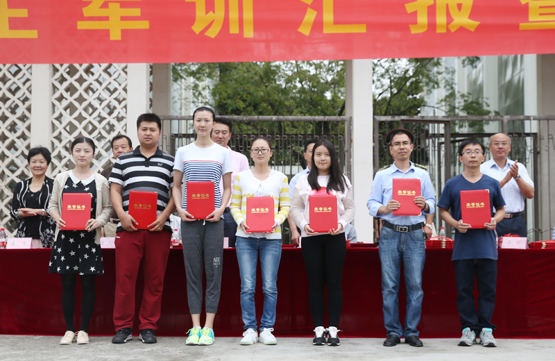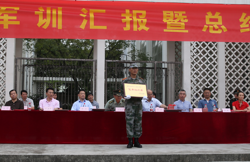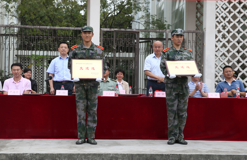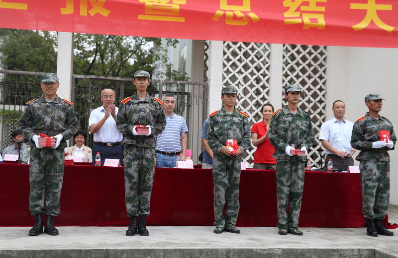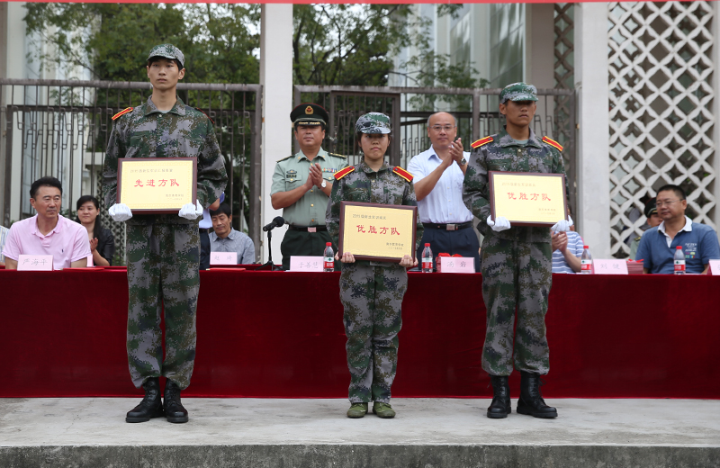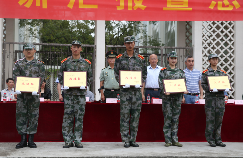 汇报表演结束后,院人武部部长兼保卫处处长、军训大队政委王加华作军训工作总结,党办、院办主任刘健宣读《关于表彰2015级新生军训“先进集体”和“先进个人”的决定》,教务处处长严海平宣读《关于表彰2015级新生军训内务“标兵宿舍”的决定》。大会表彰了优秀组织奖1个、先进连2个、先进排5个、阅兵优胜方队2个、汇报表演先进方队1个、优秀教官代表3人、优秀管理人员7人、优秀学员代表5人。主席前排就座领导为获奖人员颁奖。