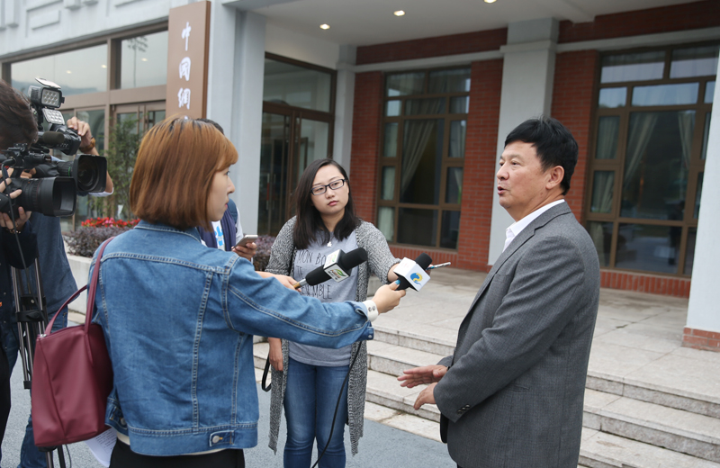 我院副院长、中国网球学院院长蒋宏伟接受记者采访