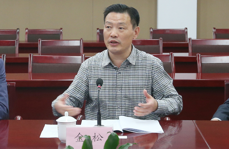 副院长金松为林华韦校长一行介绍国术场