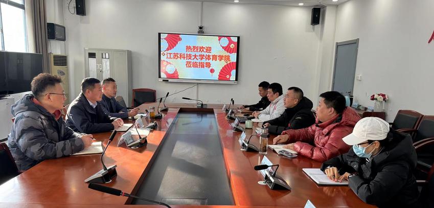 2024年1月5日下午,江苏科技大学体育学院副院长赵长征、教研室主任郝小刚、学生管理工作负责人徐仰良一行来体育产业与休闲学院休闲体育系,就休闲体育专业建设相关情况进行调研。体育产业与休闲学院院长王龙飞、休闲体育系主任朱瑞、实习实训中心主任张松年及休闲体育系相关教师参加会议。会议由王龙飞主持。