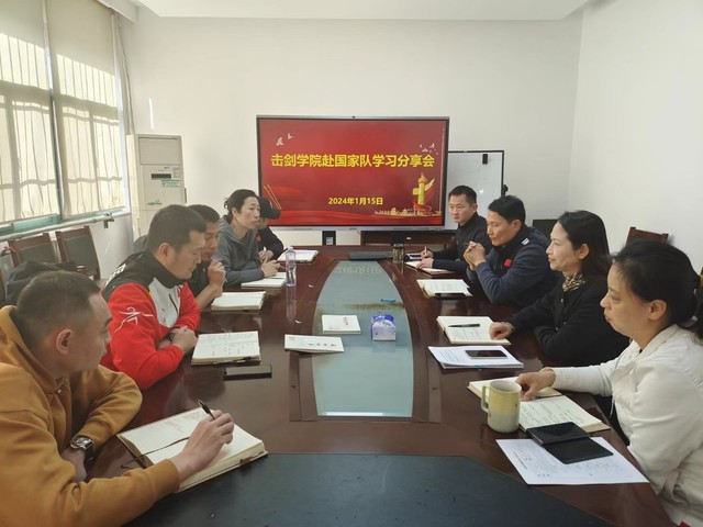 1月15日,校训练例会会议精神,击剑学院举行教练员赴国家队学习经验分享会,击剑学院全体管理干部、教练员参加了分享会。