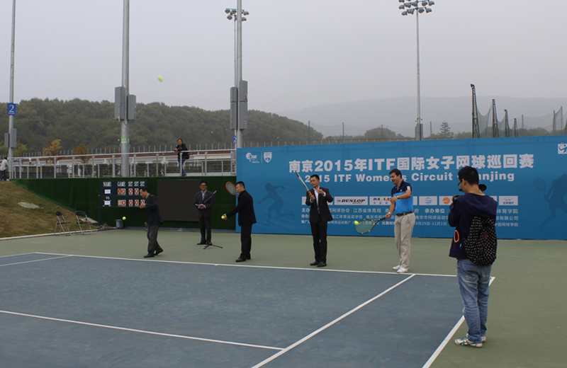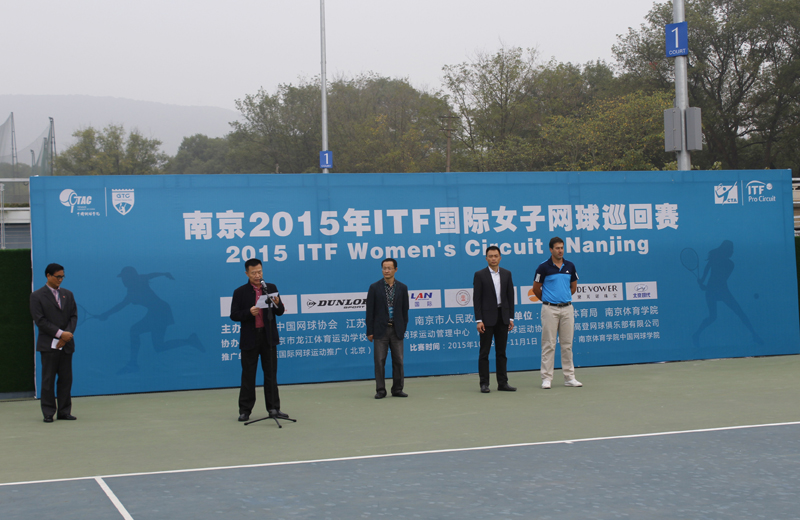 10月25日上午10点,南京2015年ITF国际女子网球巡回赛开球仪式在PA视讯集团入口中国网球学院举行。南京市体育局副巡视员陈苏宁、国家体育总局网球运动管理中心竞赛部副主任吕亮、PA视讯集团入口中国网球学院教学科研部兼经营管理部部长秦利君、国际银牌裁判长阿戴尔等出席了仪式。