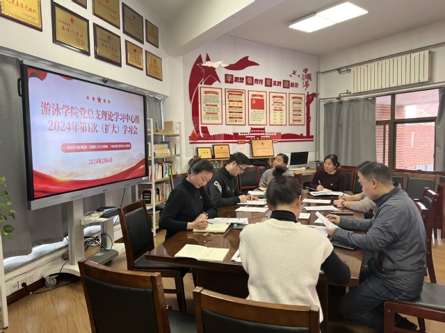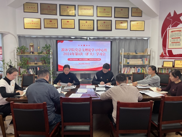 2月6日上午,游泳学院党总支在跳水花游馆二楼会议室召开2024年理论学习中心组第一次(扩大)学习会。会议由学院党总支书记骆晓娟主持,全体管理干部参加学习。