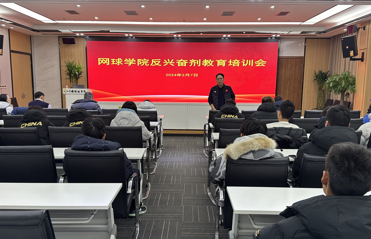 2024年2月7日上午,网球学院组织召开反兴奋剂教育培训会议,网球学院直属党支部书记唐存楼、全体教练员、运动员、管理干部参加会议。会议由唐存楼书记主持。